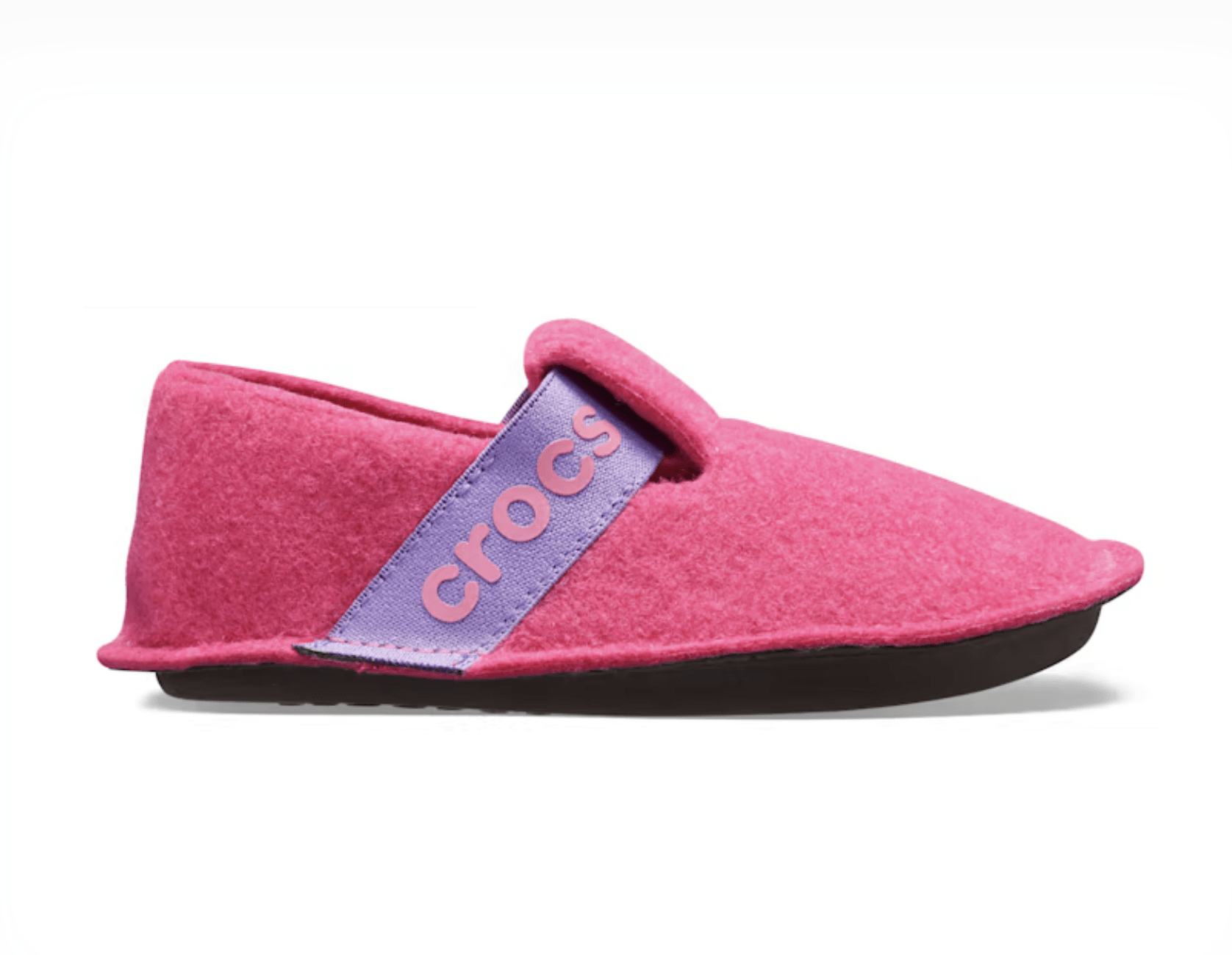 Knallig in pink (aber auch in blau) von Crocs für ganz einfaches überziehen und sicheren Halt.