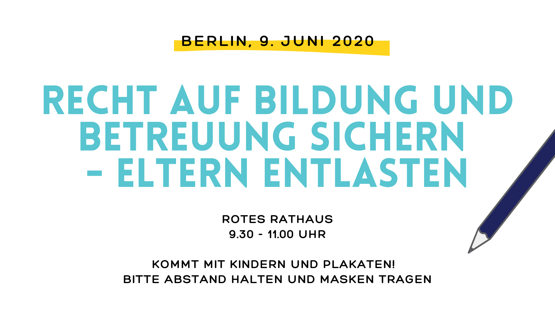 Wir versuchen normalerweise nicht nur auf Berlin zu gehen – heute machen wir eine Ausnahme: Denn wir haben eine Demo angemeldet! Für uns. Für euch. Aber vor allem: GEMEINSAM MIT EUCH! Denn viele andere Städte haben es vorgemacht: Eltern haben sich stark gemacht, haben ihre Stimme erhoben und in den Rathäusern demonstriert. Und haben direkt Fortschritte damit erzielt. Lasst uns zeigen, dass wir das in der Hauptstadt auch können! Und zwar am kommenden Dienstag, wenn der Senat über den Verlauf von Kitas und Schulen nach den Sommerferien berät. Denn wir sind nicht still. Wir sind laut. Und wir wollen, dass unsere Forderungen ernst genommen werden! Dafür brauchen wir JETZT eure Unterstützung! Unterzeichnet unseren Appell auf OPEN PETITION und kommt mit demonstrieren!