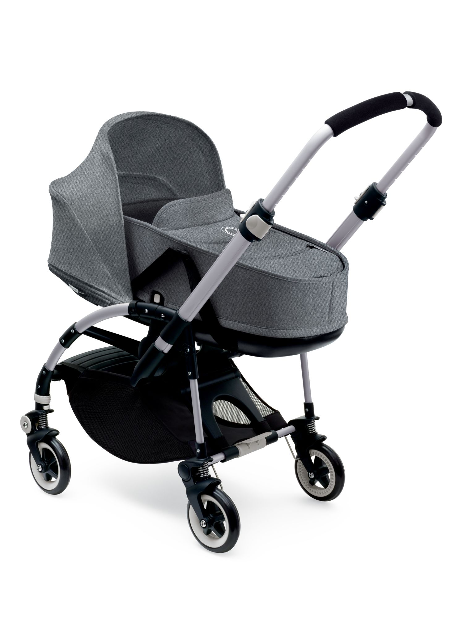Die Formsprache vom Vorgänger wurde auch beim Bee3 beibehalten, sodass er mich irgendwie an einen sportlichen Rollstuhl erinnert. Und er ist von der Materialwahl und der Verarbeitung qualitativ extrem hoch angesiedelt, aber das kennen wir ja nicht anders von Bugaboo! Besonders toll finde ich die aktuelle Farbauswahl und wie üblich, kann man sich je nach Geschmack den Kinderwagen farblich selbst zusammenstellen. Mein Favorit war bereits in Amsterdam das komplett graue Modell , weil der Stoff unglaublich soft ist und dabei eine ungewöhnliche Denim-Struktur besitzt.