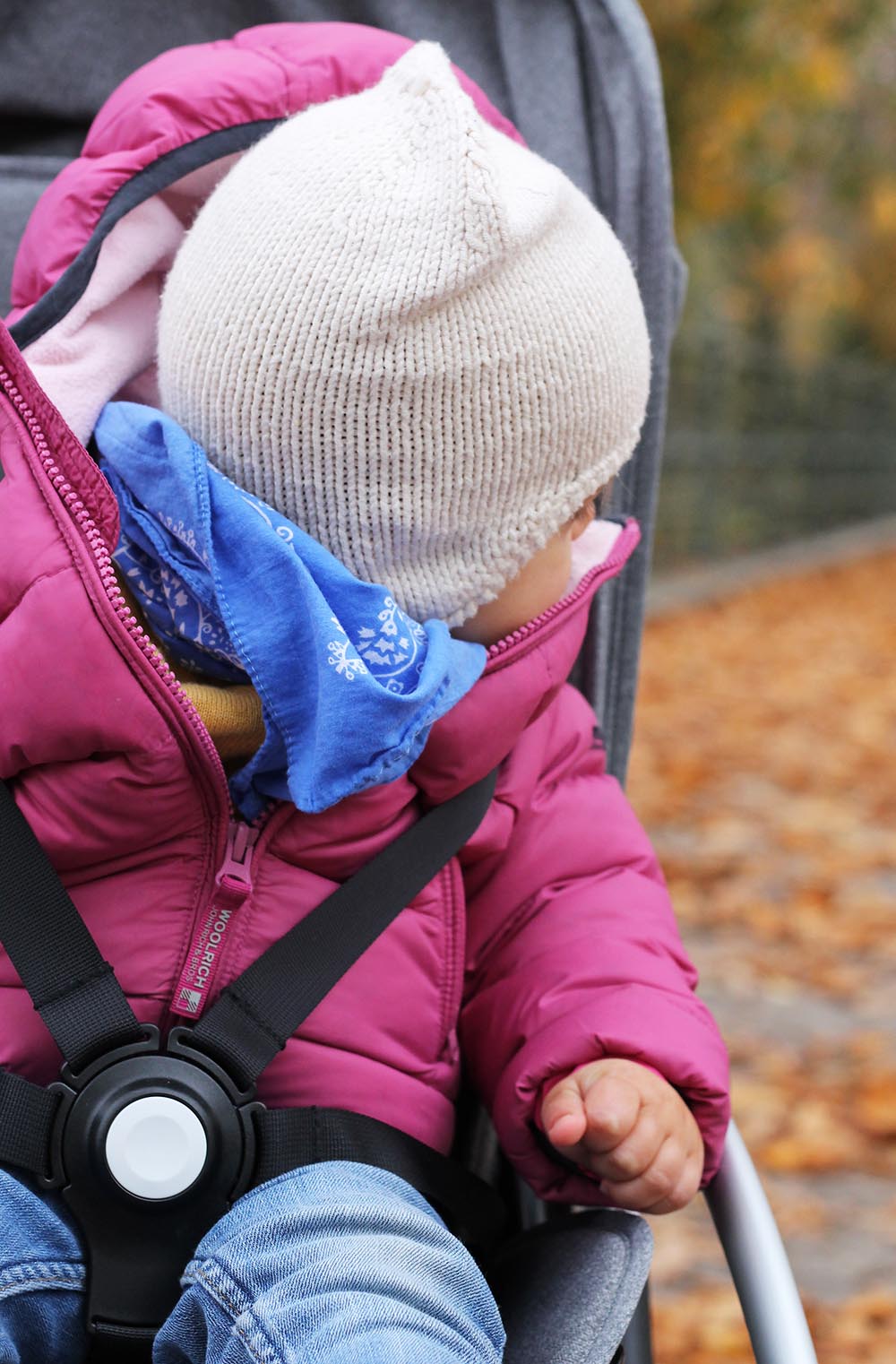 Es gibt natürlich auch etwas, was mir nicht so gut gefällt: Für mich ist das Verdeck etwas zu kurz geraten. Ich würde mir wünschen, dass man es etwas weiter ausfahren könnte, besonders wenn Helene doch mal im Buggy schlafen soll. Und dann bin ich ein großer Fan von kleinen Sichtfenstern oben, sodass man immer mal einen Blick aufs Kind werfen kann – das ist leider auch nicht dabei. Dafür hat Bugaboo aber ein Sache, die das auf jeden Fall wieder wett macht: Das tolle Regenverdeck, dass es im Set immer direkt dazu gibt!