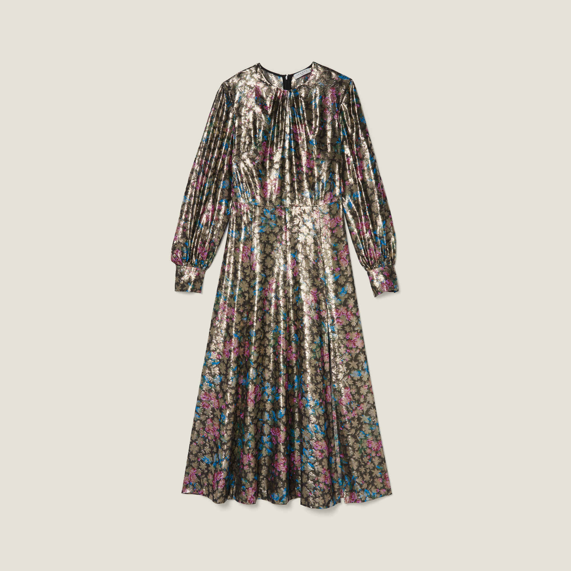 LANGES BUNTES KLEID aus LUREX-JACQUARD Preis: 295,00 EUR via Sandro