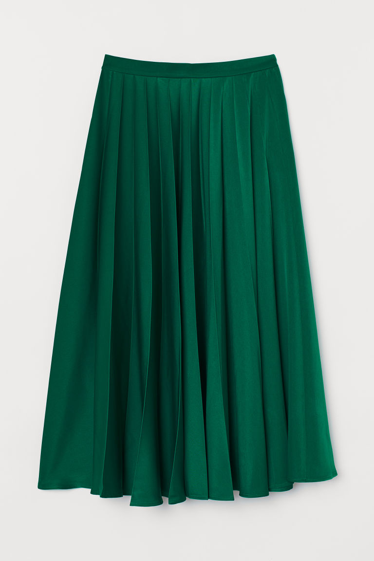 PLISSIERTER SATINROCK in TANNENGRÜN Preis: 49,99 EUR via H&M