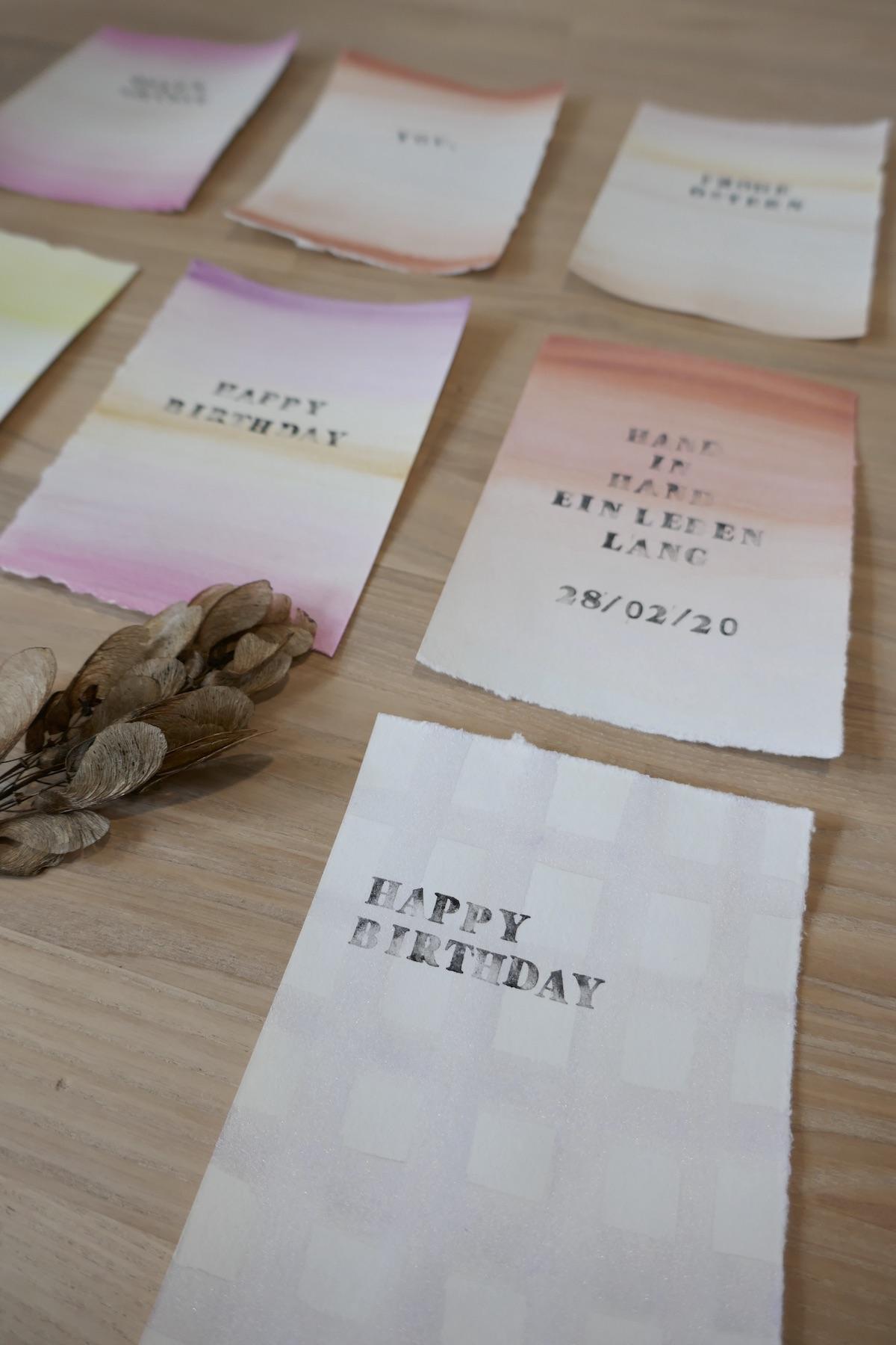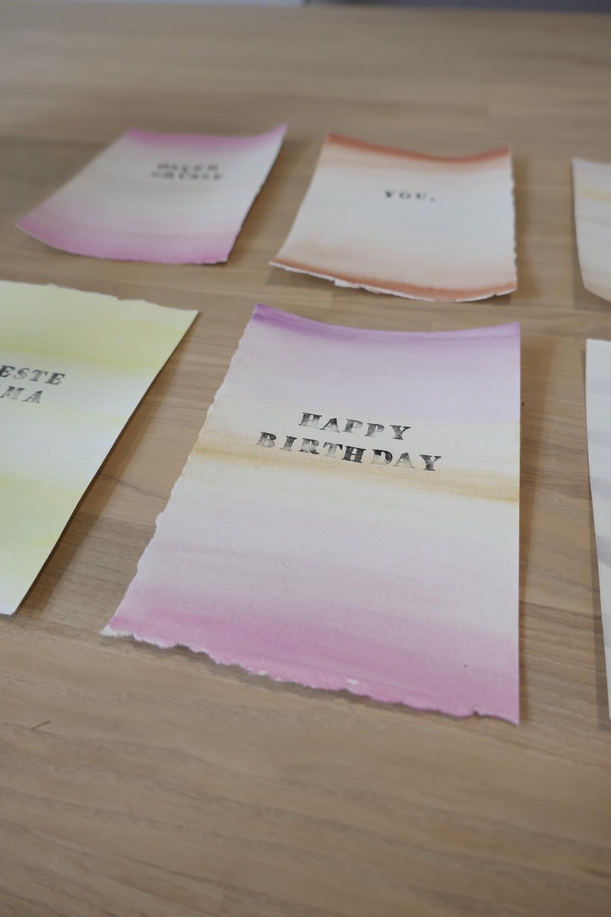 Schneidet oder reißt euch das Papier bereits im Vorfeld auf eure Kartengröße zurecht und betupft es ordentlich mit Wasser.