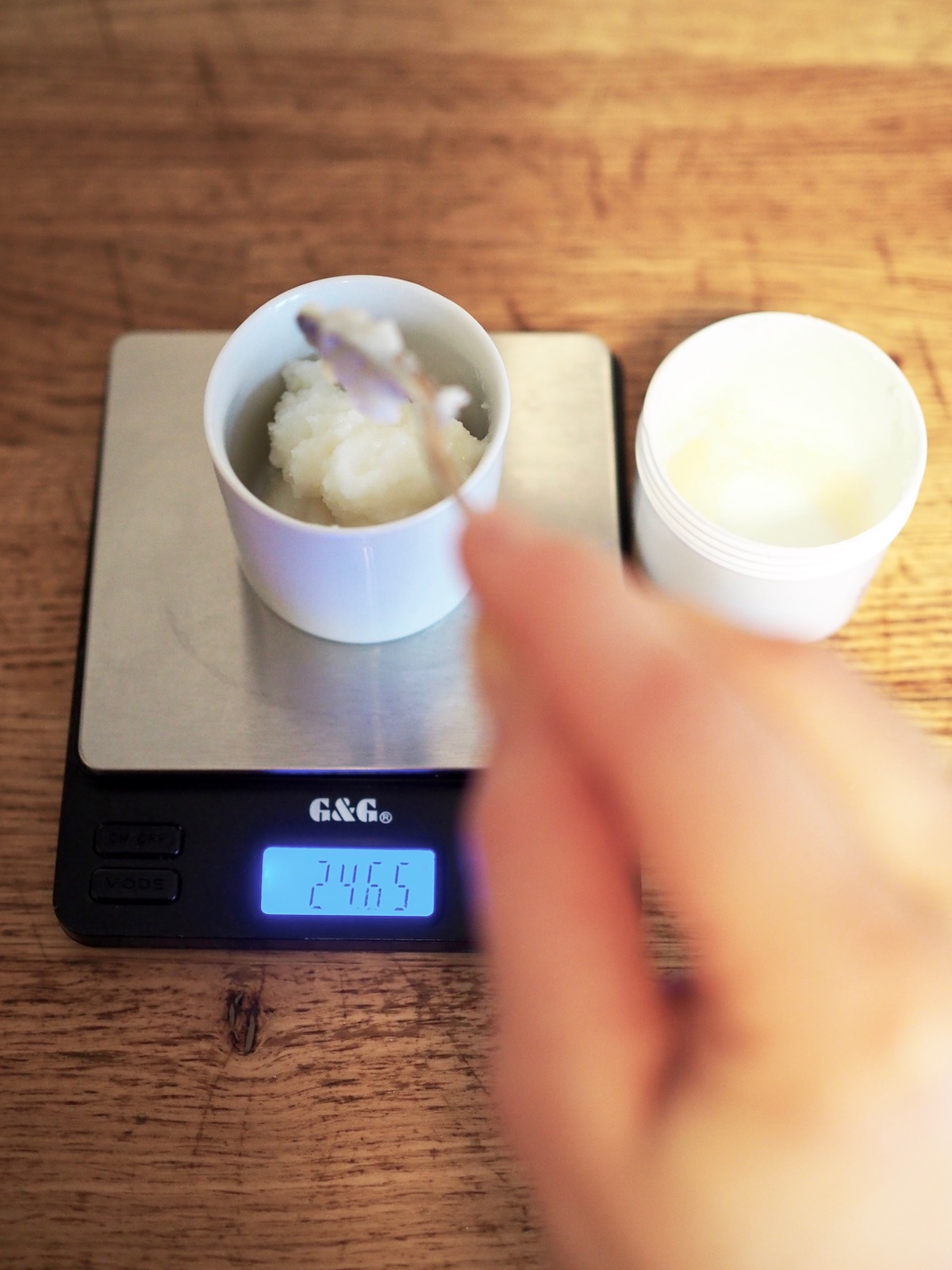 Sheabutter und Kokosöl mit eurer Küchenwage exakt abwiegen.