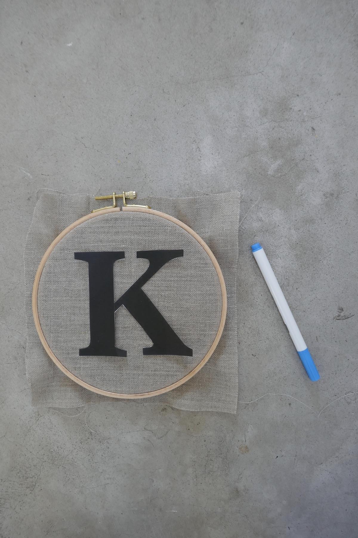 Schneidet den Buchstaben aus, legt ihn auf den Stoff und übertragt ihn auf den Stoff.