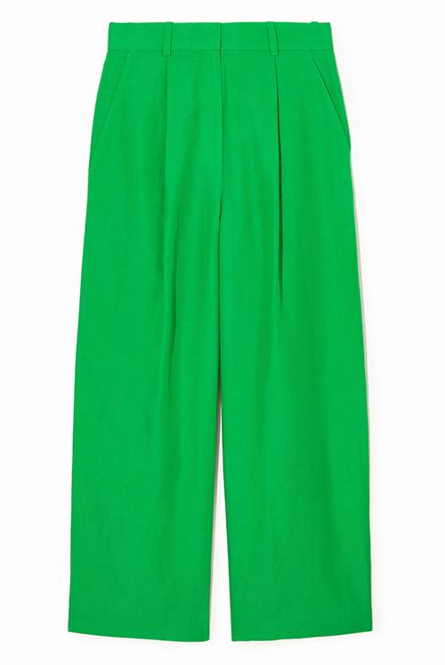 Leuchtend grüne Hose mit hohem Bund und weitem Bein aus Tencel von Cos.