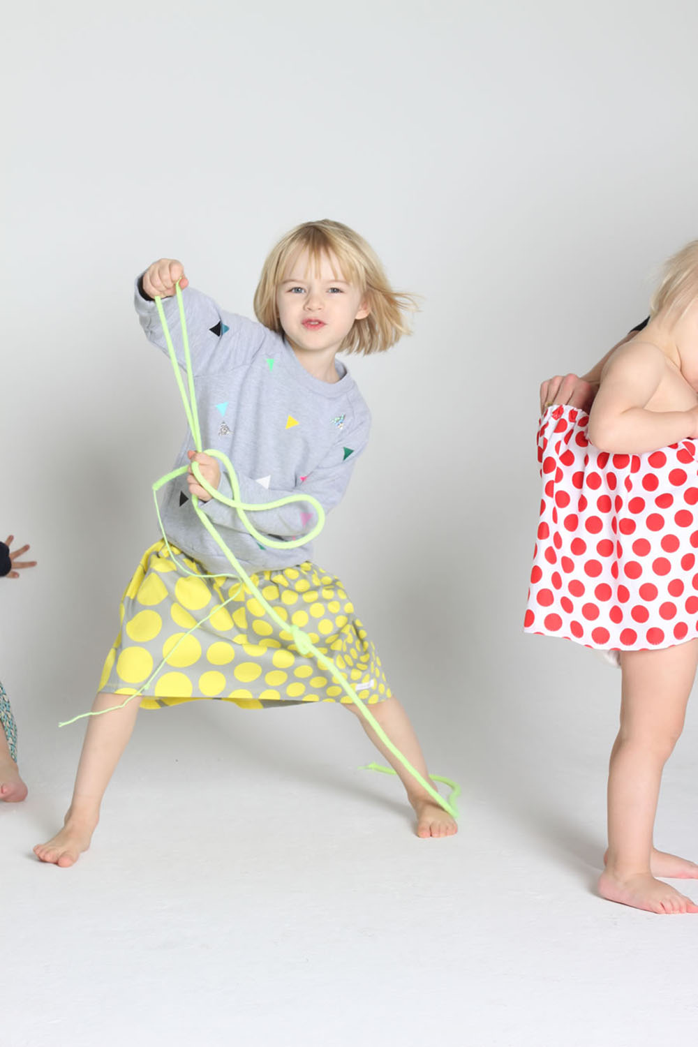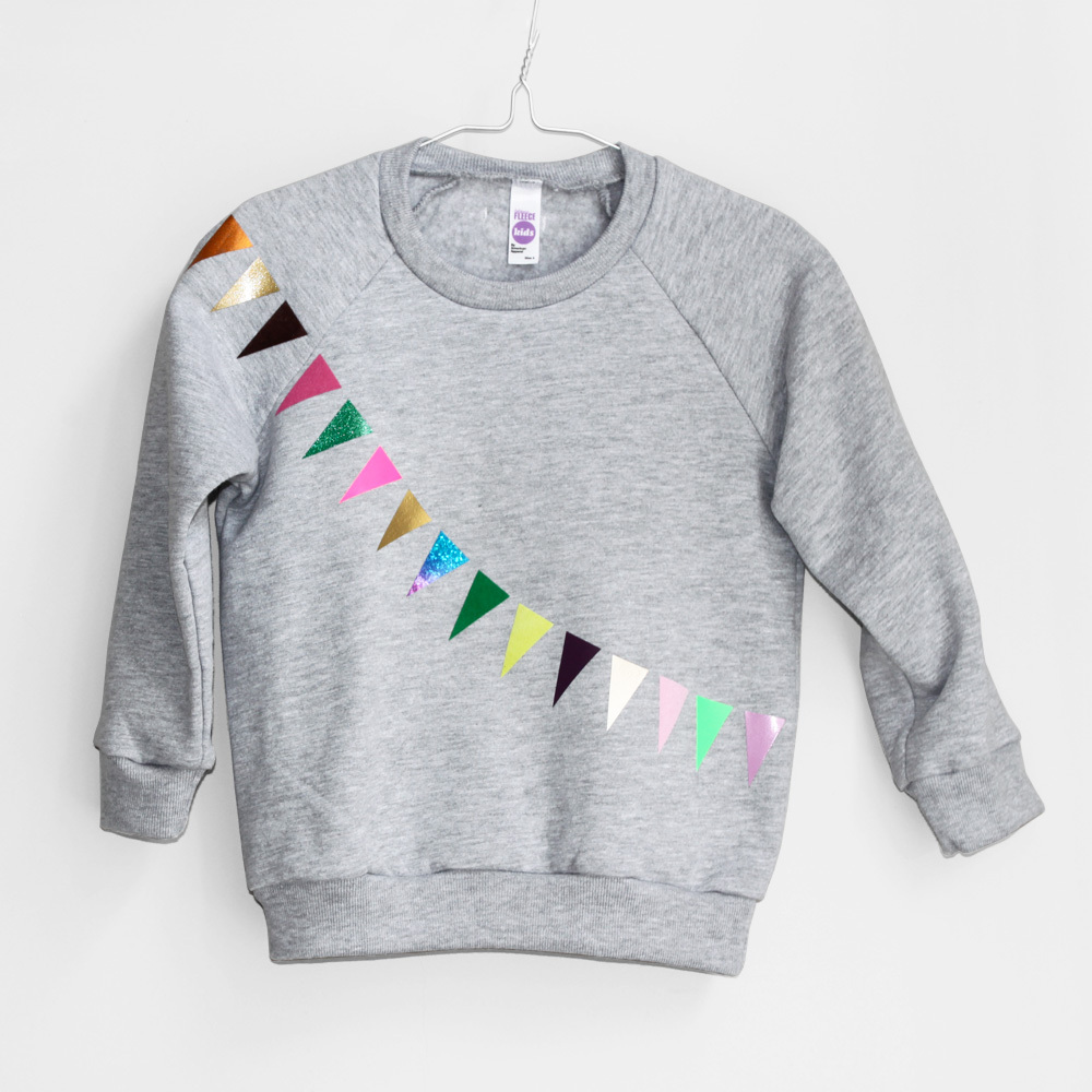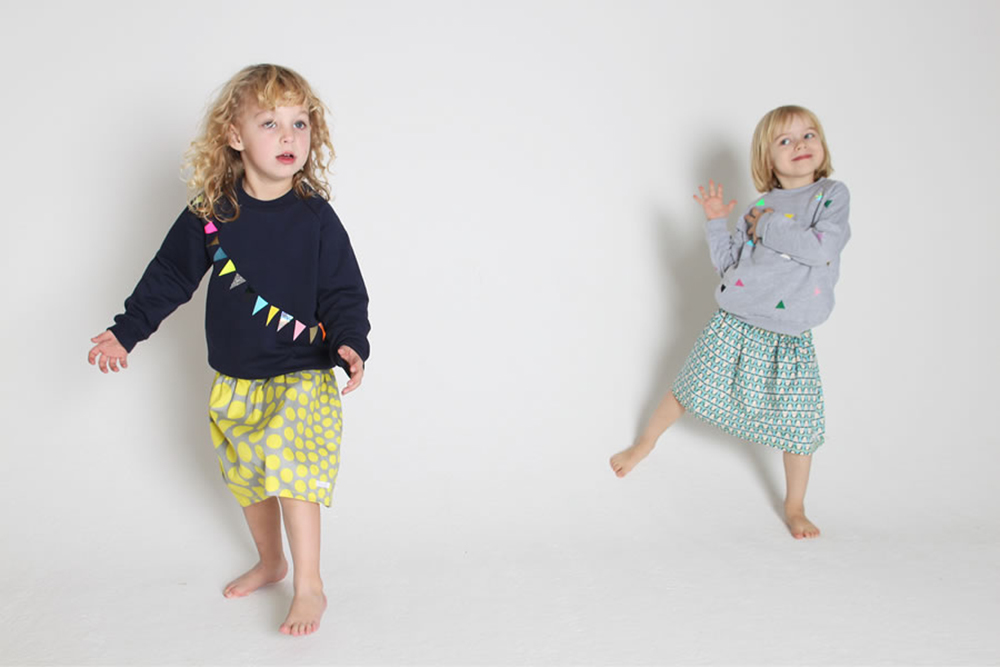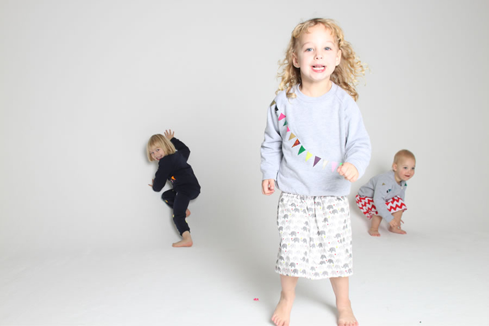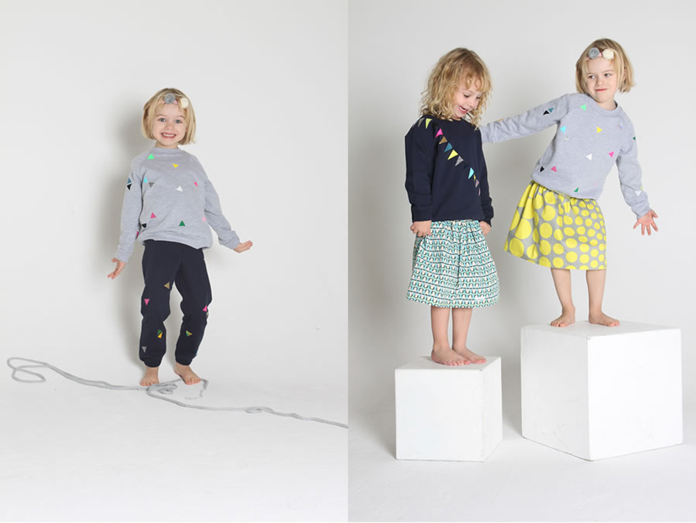 Wimpel über Wimpel auf Sweathirts und Jogginghosen – sie sind bunten, sie leuchten, sie glitzern, sie machen gute Laune. Es sind einfach alltagstaugliche, bequeme Sachen, die den Kids gefallen und die Eltern ihren Kindern gerne anziehen. Jedes Teil ist ein Unikat, keines gleicht dem anderen. Die Sweater sind von American Apparel und die Aufdrucke entsprechen dem OekoTex Standard. Los geht’s mit einer Größe von 80 – also noch etwas groß für das Supergirl, aber im nächsten Herbst passt sie auf jeden Fall rein!