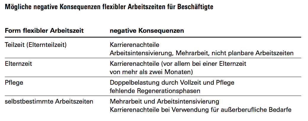 Die folgende Tabelle aus einer Studie der Hans-Böckler-Stiftung zeigt nur einige der Nachteile, die sich aus Teilzeitarbeit ergeben.