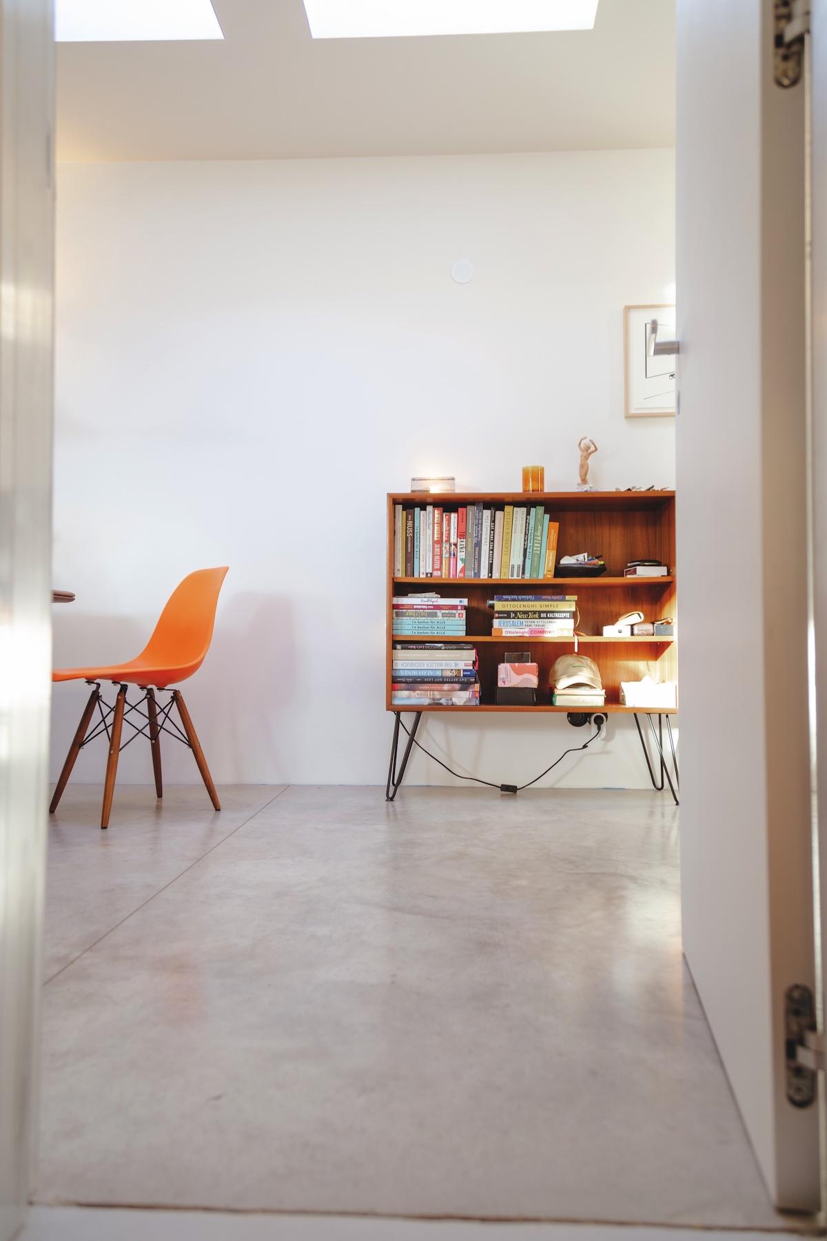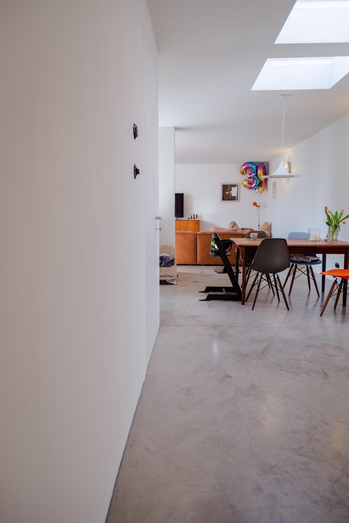 Es ist hell und aufgeräumt. Alle räumen auf, bevor die Fotografin kommt, um eine Homestory aufzunehmen. Aber ich glaube, hier ist es – fast immer – ordentlich, weil generell einfach weniger herumsteht, das für Unordnung sorgen kann. Hier hat alles seinen festen Platz und als Besucher möchte man gern gleich mit einziehen.