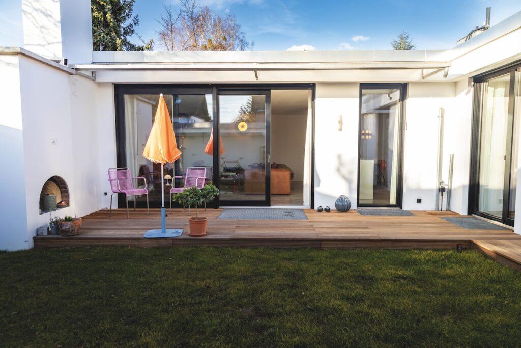 In diesem Haus aus den 60ern wohnen seit September 2024 Julia, Fabian und die beiden Kids, eins davon noch richtig jung, der Größere ein Teen. Der Bungalow stammt aus dem Jahr 1966, und wurde von Julia und Fabian im Originalzustand übernommen. Das bedeutete: eine komplette Kernsanierung. Leitungen, Rohre, Heizung, Fenster, Wände, Bäder – es musste einmal alles neu. Die beiden hatten dennoch den Wunsch, den Charme der 60er-Jahre zu bewahren – und das ist ihnen gut gelungen.