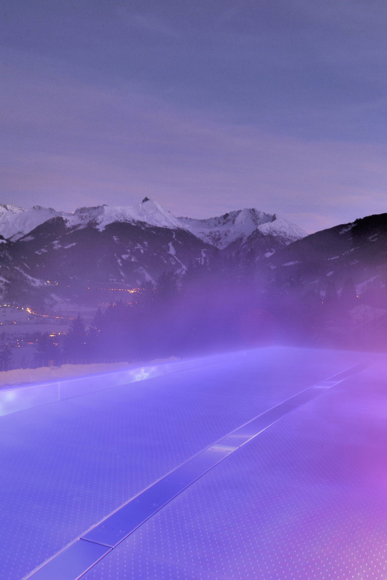 Dem Gold-Bergbau, der dem Gasteiner Tal glorreiche Zeiten bescherte, verdankt DAS.GOLDBERG seinen Namen. Doch nicht nur der Name wurde von der Umgebung geprägt, auch in der Inneneinrichtung spiegeln sich die ansässigen Rohstoffe wider. So prägt eine Kombination aus Gold, Holz, Stein, Eisen und Glas das gesamte Hotel. Einen Kontrast dazu bieten die sehr farbenfrohen Teppiche, an die ich mich erst mal gewöhnen musste. Besonders gelungen ist das romantische in Szene Setzen besonderer Möbelstücke durch eine durchwegs gedämpfte Beleuchtung. Die Zimmergrößen sind sehr variabel. Angefangen mit einem Studio in Größe S mit 26 qm bis hin zu den Suiten mit 90 qm kann man je nach Belieben und Möglichkeiten wählen. Ein absolutes Highlight auf den Zimmern ist die äußerst großzügige Terrasse mit Blick auf das gesamte Tal. Was das Hotel für mich auch noch sehr besonders macht, ist seine schöne Lage am Berg, welche einen beeindruckenden Panoramablick zulässt. Man kann auf das gesamte Gasteinertal herunterblicken und fühlt sich schwerelos.