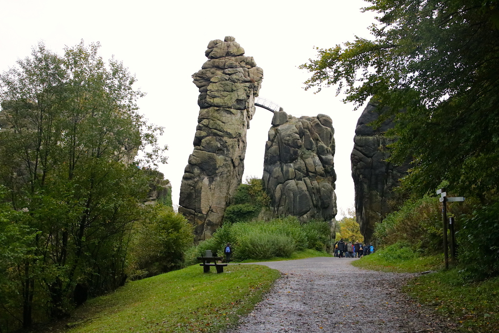 Die Externsteine sind eigentlich ein Muss, wenn man im Kreis Lippe zu Besuch ist. Die Steine bilden eine 37 Meter hohe Felsengruppe, die unseren Vorfahren als heidnische Kultstätte diente. Auf den Steinen befindet sich ein im frühen Mittelalter eingemeißeltes Relief der Kreuzabnahme Christi. Die Größe und Qualität ist einzigartig für den gesamten nordwesteuropäischen Raum. Der Ausflug lohnt sich sehr. Der Ausblick ist fantastisch. Und die paar Stufen schafft jeder.