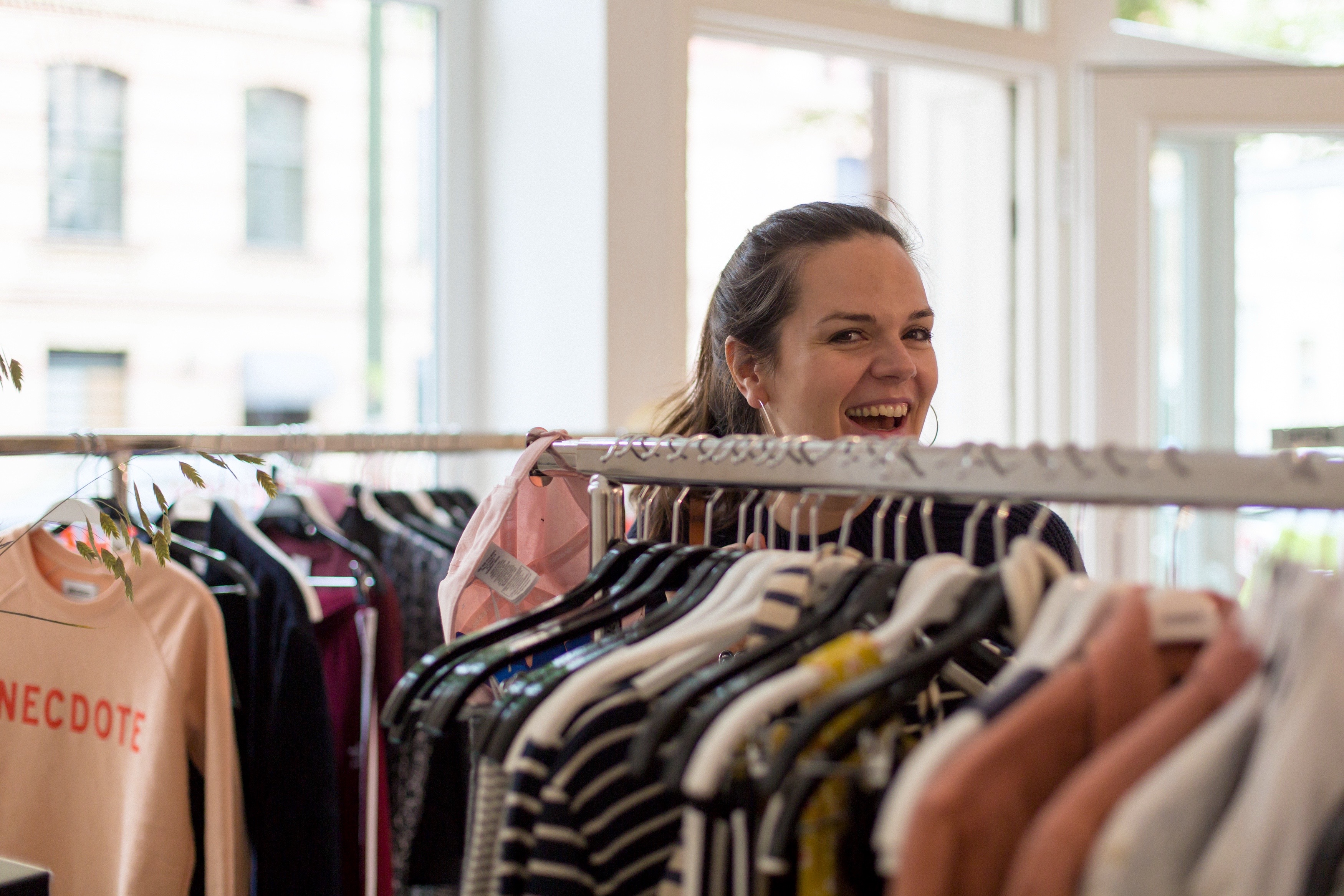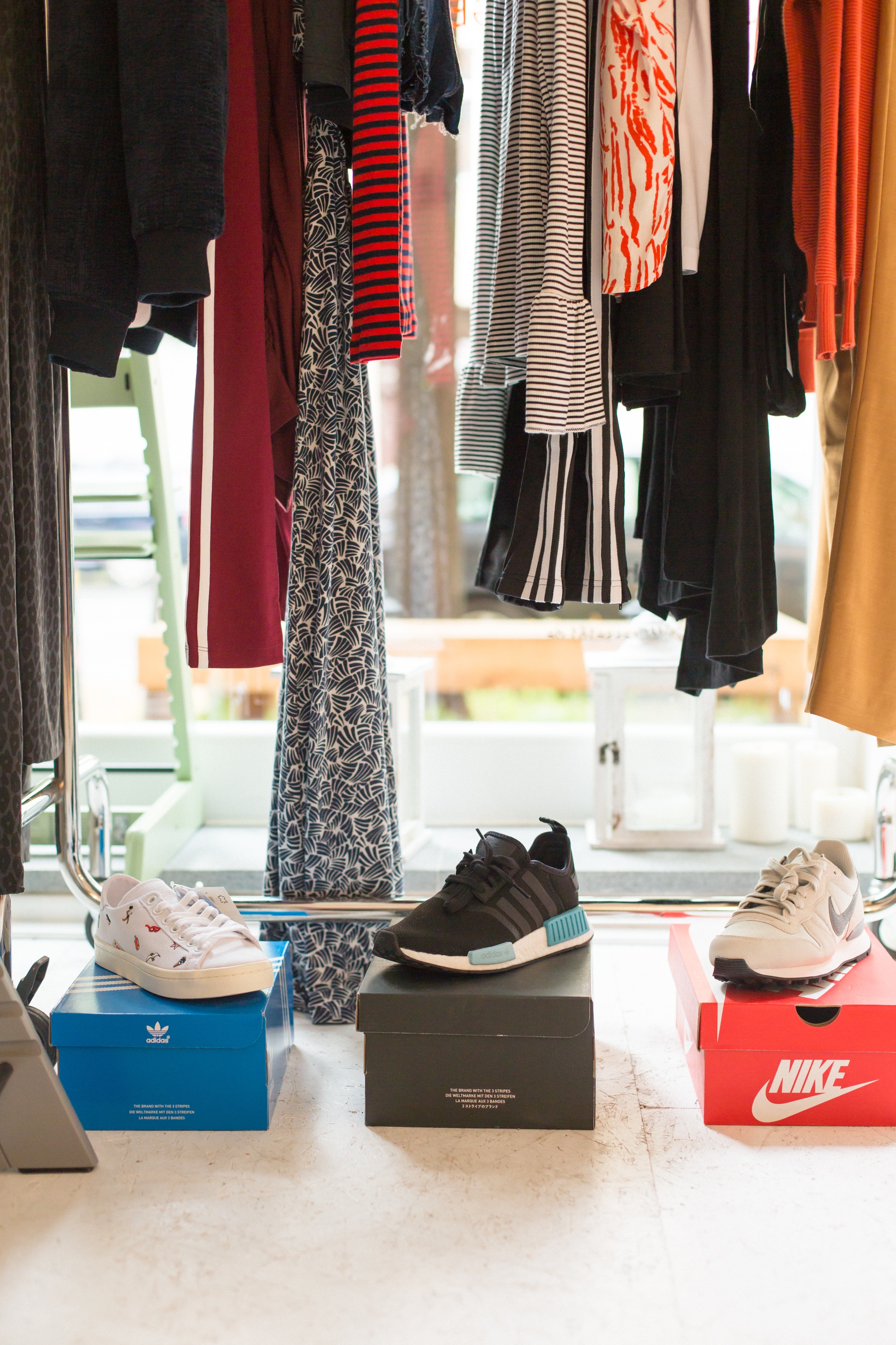 Janine und ich hatten eine selektierte Auswahl an Outfits von Kauf Dich Glücklich und dem Schwangerschaftslabel Boob auf drei großen Ständern verteilt, an denen wir uns und die Frauen sich austoben konnten. Was für werdende und frische Mamas am bequemsten ist, passt perfekt zum Athleisure Stil, der die Modewelt derzeit regiert. Dem hat sich auch Stokke gewidmet und eine eigene kleine Stoff-Edition, den “Athleisure” des Xplory Kinderwagens, kreiert.