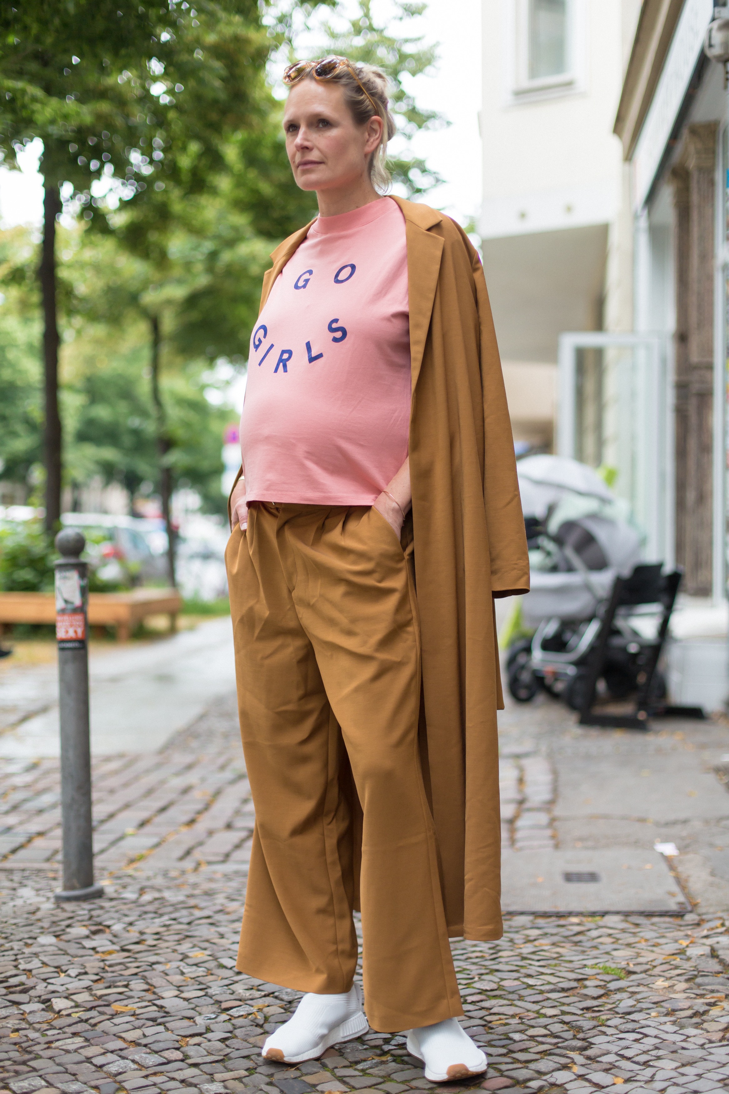 - Macht euch locker! Solange die Leute nicht wissen, ob es ein Schwangerschafts- oder ein zu-viel-Pizza-Bäuchlein ist, trägt man am besten fließende Stoffe – das kaschiert.