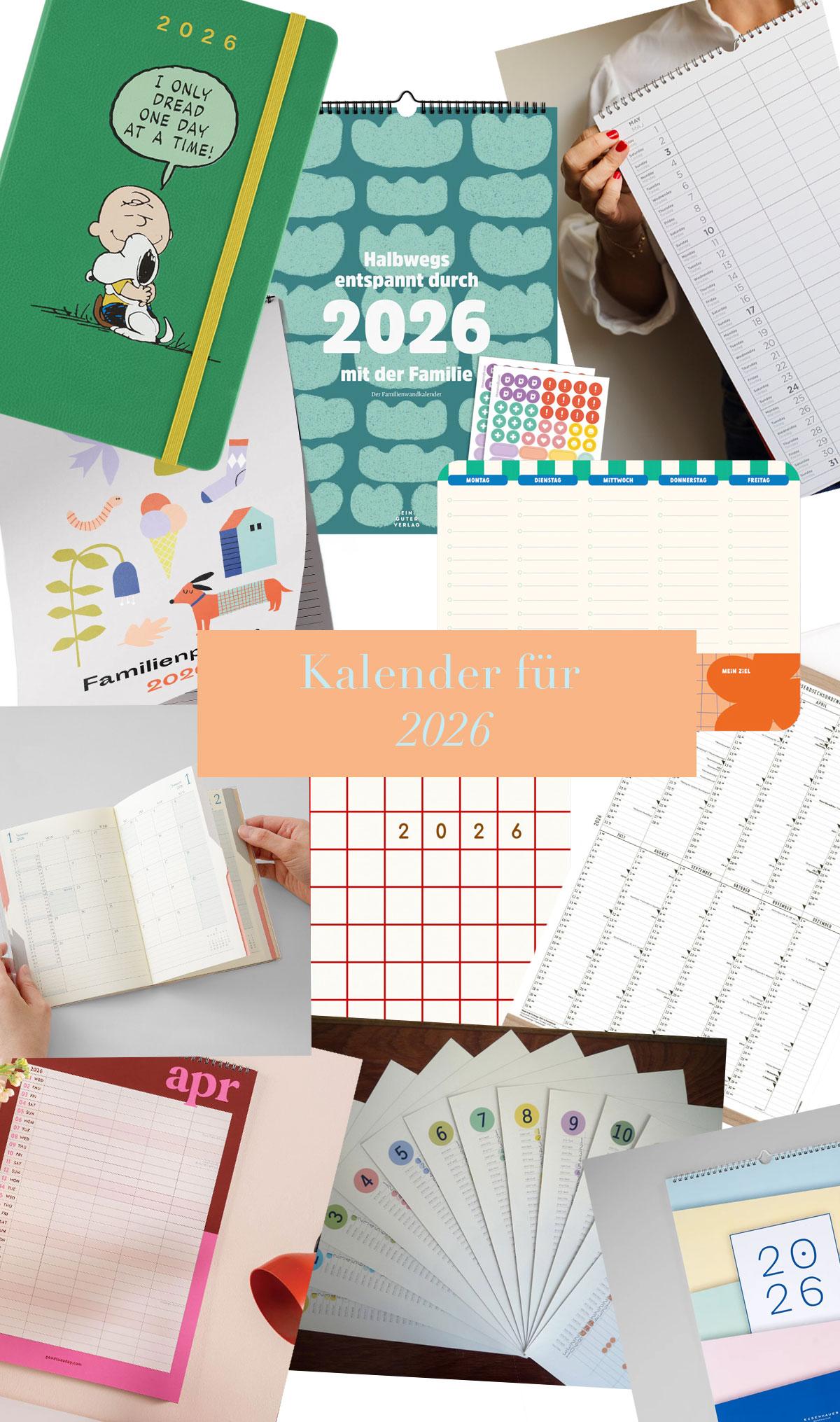 Die Familienkalender zum Aufhängen hängen gut sichtbar in der Küche oder im Flur und sorgen dafür, dass hoffentlich (!) wirklich jeder weiß, wann wer wo sein muss. Kein „Das hast du mir nicht gesagt“ mehr, keine vergessenen Turnbeutel-Termine oder Doppelverabredungen. Stattdessen: Überblick. Und während der Wandkalender das Familienleben koordiniert, dürfen Terminplaner für unterwegs nicht fehlen. Ob im Rucksack, in der Handtasche oder im Auto – ein kompakter Kalender für 2026 ist perfekt für alle, die auch unterwegs den Überblick behalten wollen. Mit Tagebuchfunktion oder anderen Organisationstalenten kann er dann sogar noch viel mehr als nur Kalender sein. Hier findet ihr übrigens noch mehr Kalender für 2026.