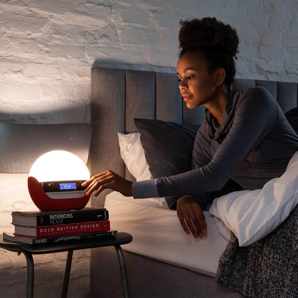 Ein typischer Wecker reißt uns mit Lautstärke aus dem Schlaf — oft ein Schock für Körper und Geist. Die Glow 150 dagegen simuliert einen natürlichen Sonnenaufgang über 20, 30 oder 45 Minuten, wodurch Licht und Farbe ähnlich wie morgens draußen auf uns einwirken. Dieser sanfte Lichtwechsel kann helfen, die Produktion des Schlafhormons Melatonin zu dämpfen und die des Aufwachhormons Cortisol steigern – kurz: Der Körper wird auf sanfte Weise auf „wach“ eingestellt und wir kommen morgens leichter raus.