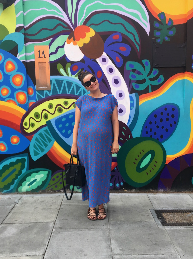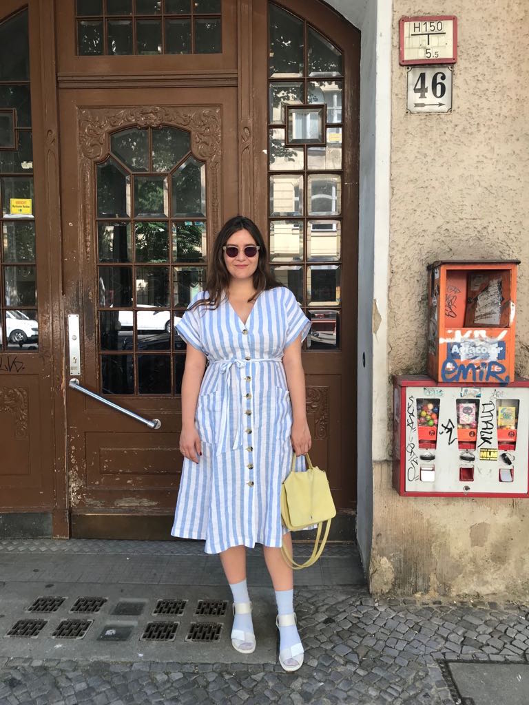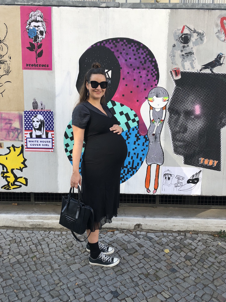 Die ersten 4 Monate der Schwangerschaft sind rum und mein Bauch hat endlich das Stadium von „sind das zu viele Burger oder ist da ein Baby drin“ verlassen und die Schwangerschaft ist offiziell und sichtbar. Nur von vorne auf Fotos, im gestreiften Leinenkleid von Mango, in Sandalen von &Other Stories und eine Tasche von COS tragend, ist „Krümelchen“ noch getarnt. Präferenzen bezüglich des Geschlechts haben wir keine, daher der geschlechterneutrale Kosename. Der einzige Wunsch – gesund soll es sein. Nur 3 Wochen später erfahren wir, dass wir eine Tochter bekommen werden. Ab da wird aus „Krümelchen“ „Baby Alma“, benannt nach der Großmutter meines Mannes.
