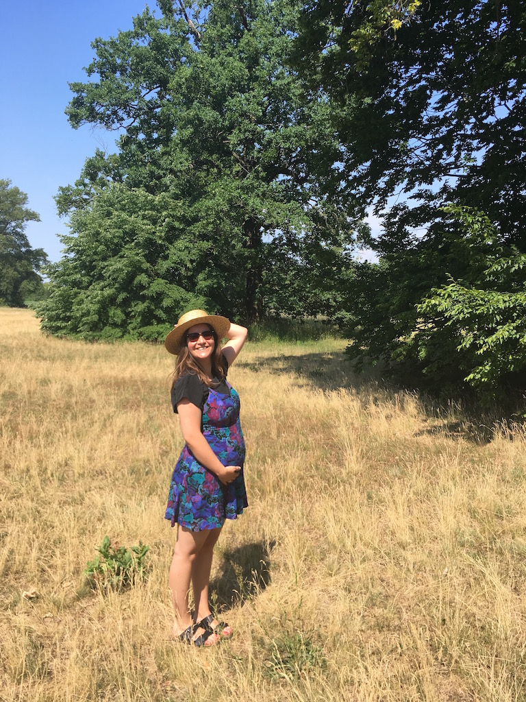 Vor wenigen Tagen bin ich 34 Jahre alt geworden, das Alter in dem ich meine Tochter Alma zur Welt bringen werde. Das beste Geburtstagsgeschenk dieses Jahr war der Moment in dem ich und mein Mann ihre Tritte zum ersten Mal gespürt haben. Hier geht es mit einer guten Freundin ins Freibad, wo wir einen Strandkorb für mich und den Bauch mieten. So sind wir vor der Sonne geschützt und ich kann die Füße hochlegen.