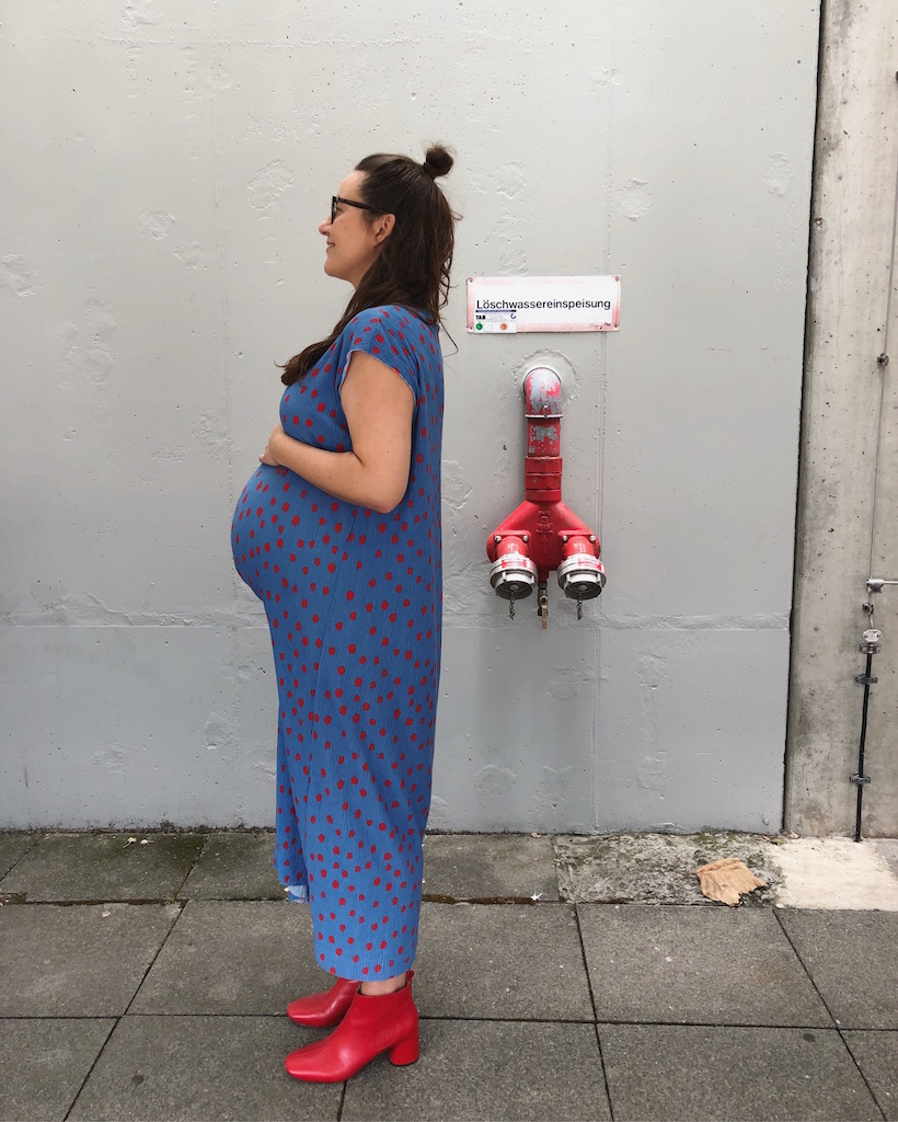 Jetzt kann es jeden Tag soweit sein und ich versuche, mich mental auf die Geburt vorzubereiten. Atmen üben, Beckenbodenübungen auf dem Hüpfeball, nochmal die Entbindungspositionen durchgehen und immer das Mantra, das machen ca. 250.000 Frauen täglich. Ich habe keine Angst, aber den größten Respekt vor der bevorstehenden Aufgabe und bin nervös. Dagegen helfen lange Spaziergänge mit meinem Mann, einer Freundin oder auch alleine – und Babyvideos auf Instagram.