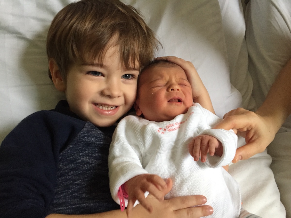 Es folgten drei aufregende Kennenlerntage im Krankenhaus. Die erste Nacht kümmerte sich ausschließlich Joscha um Milla, da ich körperlich noch nicht konnte und des weiteren damit beschäftigt war mir die Haut vom Leib zu kratzen. Eine allergische Reaktion auf das Betäubungsmittel hieß es am nächsten Tag von der Anästhesistin. Außerdem hatte ich mit meinem extrem niedrigen HB Wert zu kämpfen, da ich wohl etwas mehr Blute verloren habe. Mich konnte dennoch nichts davon abhalten, sofort aufzustehen und zu versuchen unser Kind mitzuversorgen. Am dritten Tag kam endlich Levi, der stolze große Bruder, zu Besuch, um seine Schwester kennenzulernen. Nun waren wir komplett.