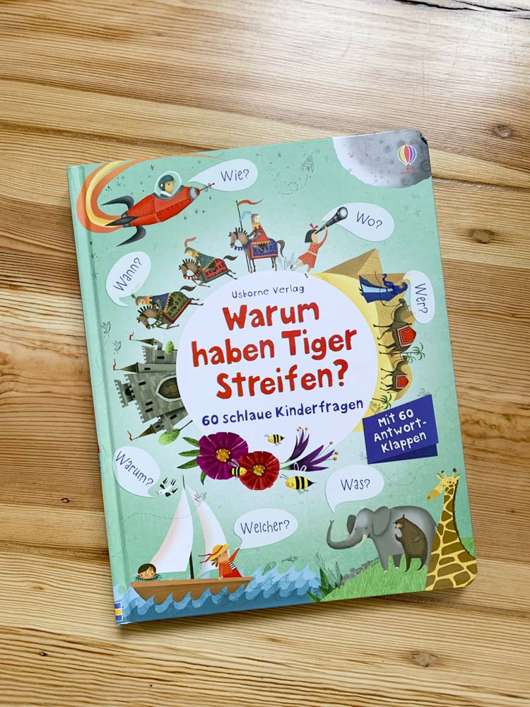 „Mama, warum haben Kamele Höcker? Und warum gibt es Wellen im Meer? Warum knurrt mein Magen? Und warum haben Tiger Streifen?“ – „Ääääääähhhhh… ehhhhhh… puhhhhhh… Tjaaaaaa…. Ich glaube das solltest du mal Papa fragen!“ Das ist dann meine Standardantwort, weil mir leider oft keine passende Antwort einfällt. Also zumindest keine, die wirklich kindgerecht ist. Dank dieses Buches, haben wir einige gute Erklärungen parat, für zumindest 60 dieser Fragen. Ist zumindest schon mal ein Anfang, oder?