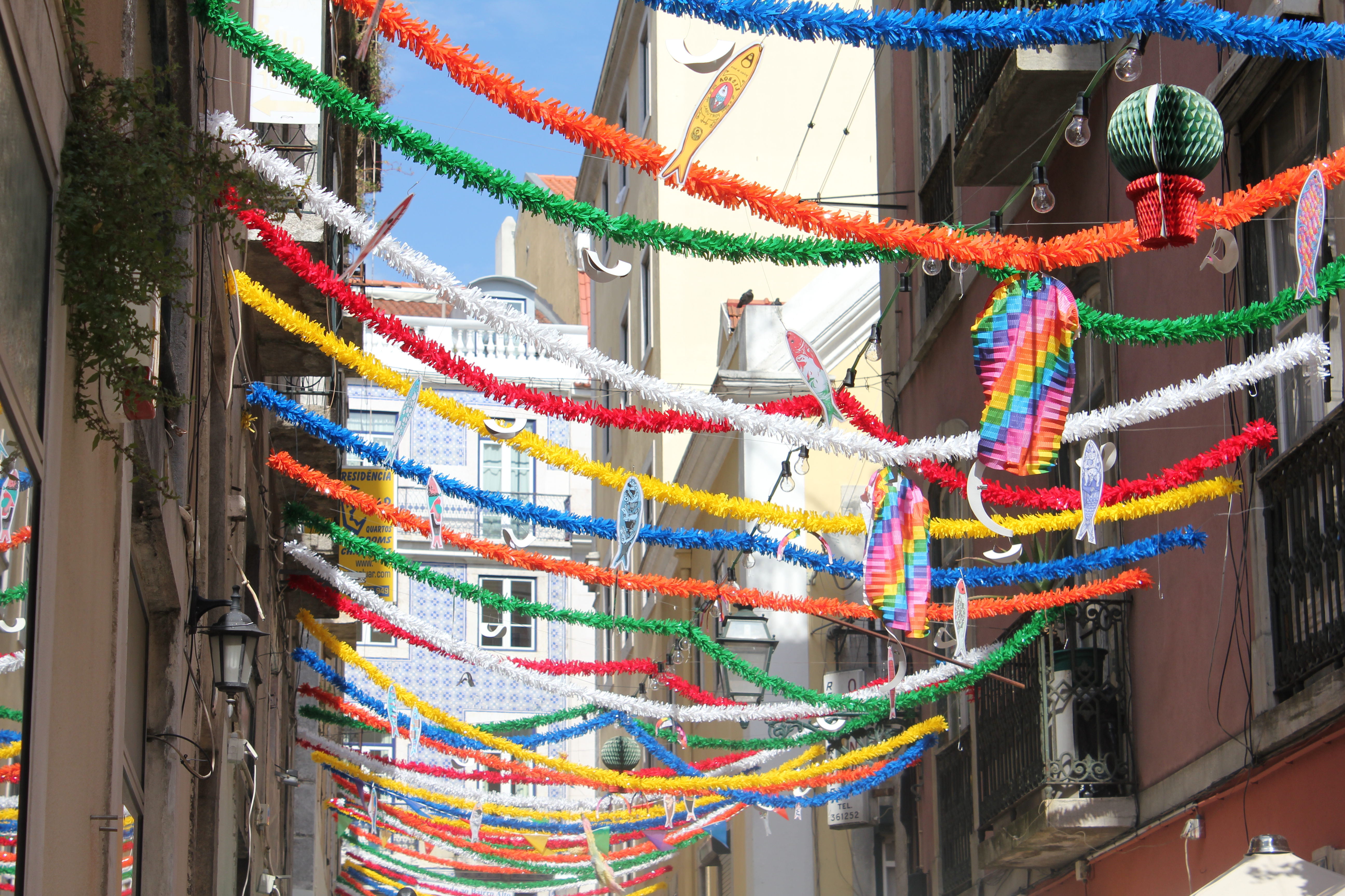 Die Oberstadt, das Bairro Alto, hat es mir besonders angetan. Alles war mit bunten Girlanden geschmückt und viele Fassaden waren typisch portugiesisch gekachelt. Das Bairro Alto ist das Ausgehviertel der Stadt, mit vielen Restaurants, Bars & Clubs. Seit vielen Jahren schon ist es auch besonders bei jungen Menschen als Wohnviertel beliebt.