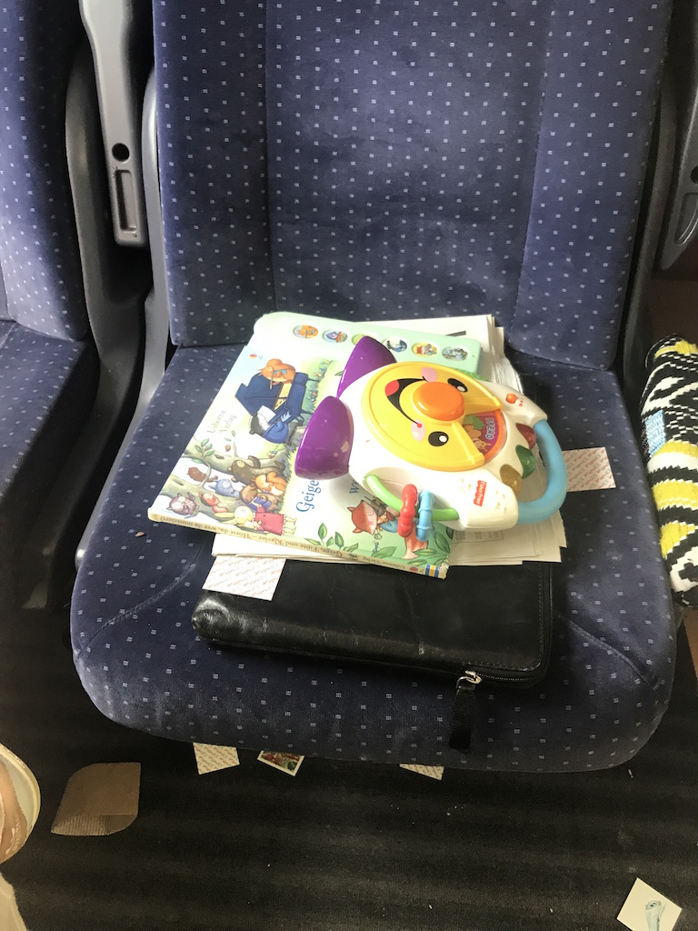 Alle, die jetzt denken, oh wie schön die beiden zusammen spielen… DAS hält genau von Hauptbahnhof bis Spandau, dann will der eine hier, der andere dort drücken und schon ist das Geschrei groß. So groß, dass sich in Spandau schonmal niemand zu uns auf den noch freien 6ten Platz traut. Weil weder ich noch die restlichen Passagiere sich das Gezanke antun wollen, habe ich einen zweiten Joker dabei, den ich auch leider jetzt schon zücken muss. Das Lernspaß Liederbuch von Fisher-Price ist ein elektronisches Musikbuch, das mit jeder umgeschlagenen Seite eine neue Melodie anstimmt. Von Klassikern wie “Backe, backe Kuchen” oder “Itsy bitsy spider” steht der Text eines jeden Liedes inklusive bunter Zeichnung auch auf der jeweiligen Seite. Zum Lesen üben für Philo und Mitsingen für alle, die möchten. Das Beste: Man kann zwei verschiedene Lautstärken einstellen und das Liederbuch mit den Ohrwürmern nach einer Weile auch stummschalten – Letzteres ist ratsam, möchte man vermeiden, auf seine singende Tasche angesprochen zu werden.