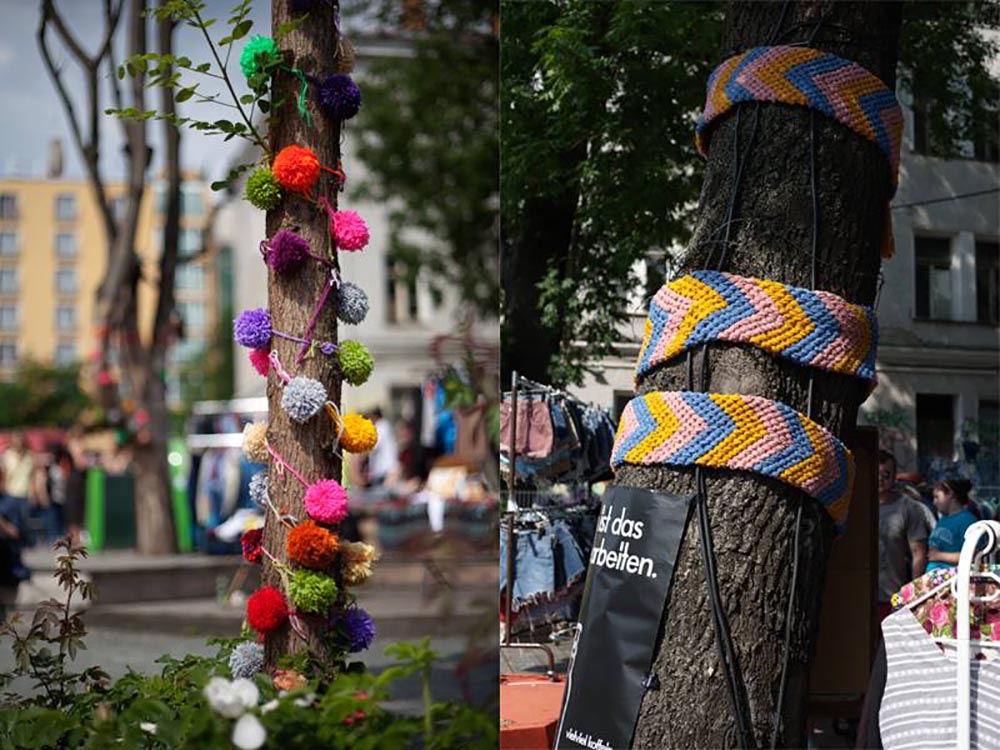 Viele fragen uns immer wieder woher der Name eigentlich kommt, denn mit Voodoopuppen, Okult oder Opfergaben hat der VOODOO MARKET so gar nichts zu tun. Alles fing 2010 im Club „Chez Jacki“ an als wir (Oryanne und Maria) uns durch einen gemeinsamen Künstlerfreund aus Lyon kennenlernten. Der gestaltete die Wand über der Bar und dort war in großen Lettern später zu lesen „VOODOO“. Wer das Chez Jacki noch kennt, der weiss, dass vor allem bei Sonnenuntergang, wenn die Spree glitzerte und das kreuzberger Ufer zu einer Schattensilhouette wurde, die Sonnenterrasse im wilden Garten viele magische Momente bescherte – und genau das war es damals für uns, als wir uns kennenlernten. Oryanne ist selbst aus der urban knitting Szene, hat schon in Galerien gearbeitet und kannte daher sehr viele Kreative unterschiedlichster Richtungen. Darunter waren Friseure, Tattookünstler, Schmuck- und Modedesigner, eine vegane französische Bäckerin, Vintagesammler und -verkäufer, ein Streetartist sowie DJs und noch einige mehr. Insgesamt war der erste VOODOO MARKET ein kleines Zusammentreffen unter Freunden, die es in dieser Zusammenstellung so nicht gab. Es waren vor allem die Flohmärkte, die die Berliner an den Wochenenden besuchten zu denen diese Melange nicht so recht passen wollte.