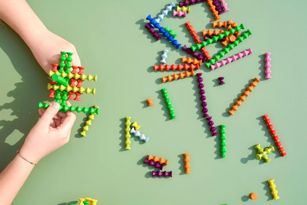 - Freies Bauen & Experimentieren: Einfach Sticks zusammenstecken und schauen, was entsteht — Figuren, geometrische Formen, Skulpturen, kleine Konstruktionen.